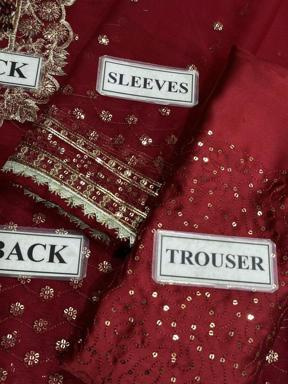 Zavian Collections pesh karta hai Asim Jofa ka ye nihayat haseen unstitched suit Premium chiffon par kiya gaya chamakdar sequence work isay party wear ke liye aik mumtaz choice banata hai Silk trouser ke sath ye outfit aap ko aik smooth aur luxury look deta hai jo har taqreeb ki jaan ban jayega