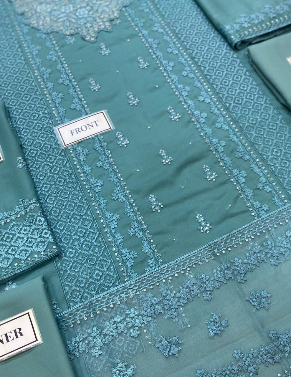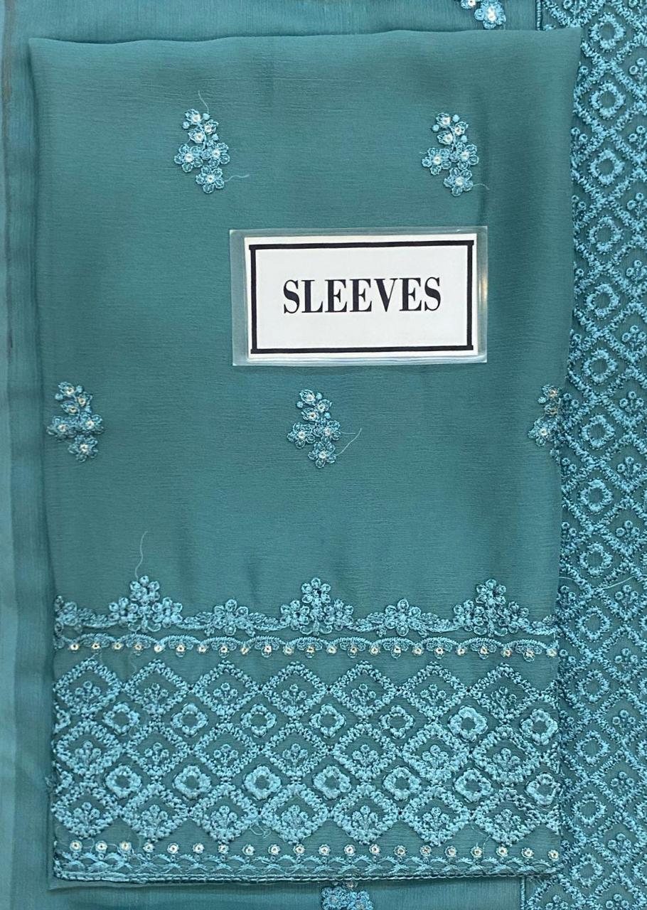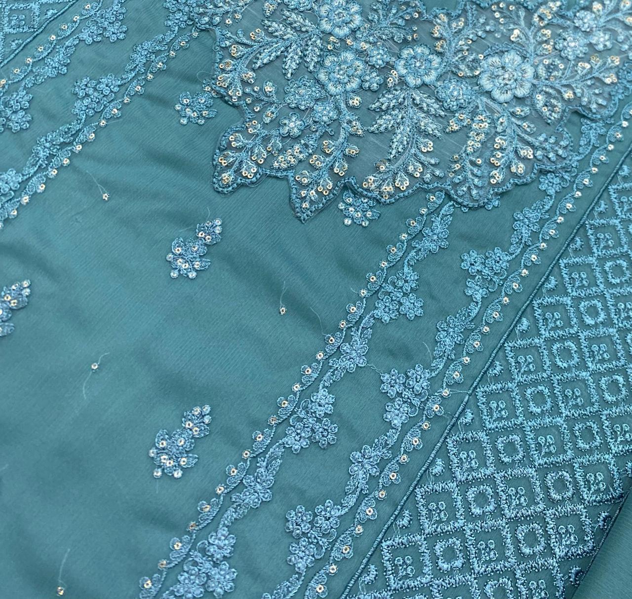 Azure Semi Pure Chiffon Embroidered Suit
