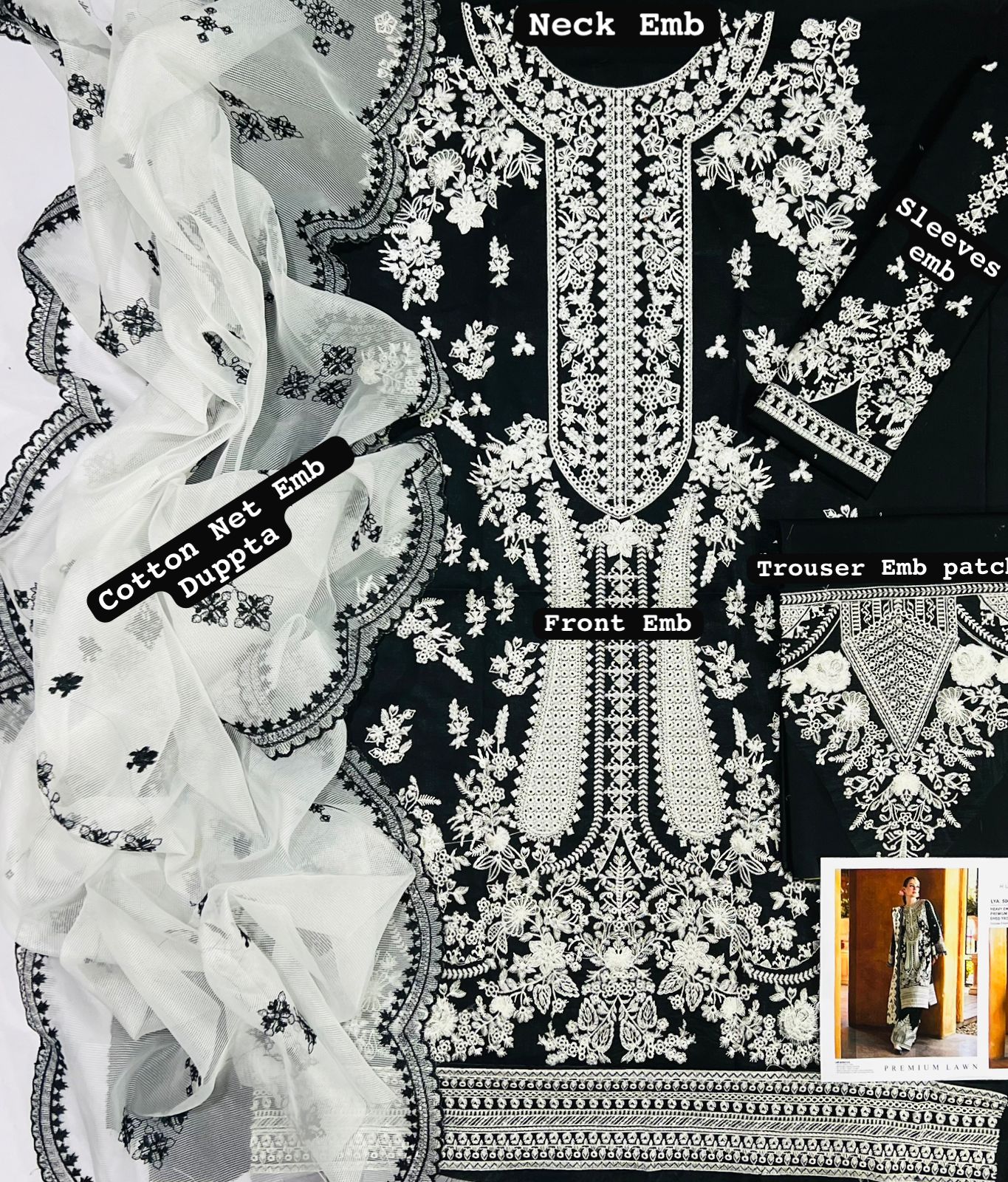 Pesh hai Charizma ka ye intehai nafees unstitched suit jo premium 90/88 lawn fabric par tayyar kiya gaya hai. Shirt par heavy embroidery aur nadeeda neck work isay aik exclusive look deta hai. Is suit ki asli jaan iska Cotton Net Cutwork dupatta hai jo isay formal wear ke liye behtreen banata hai.