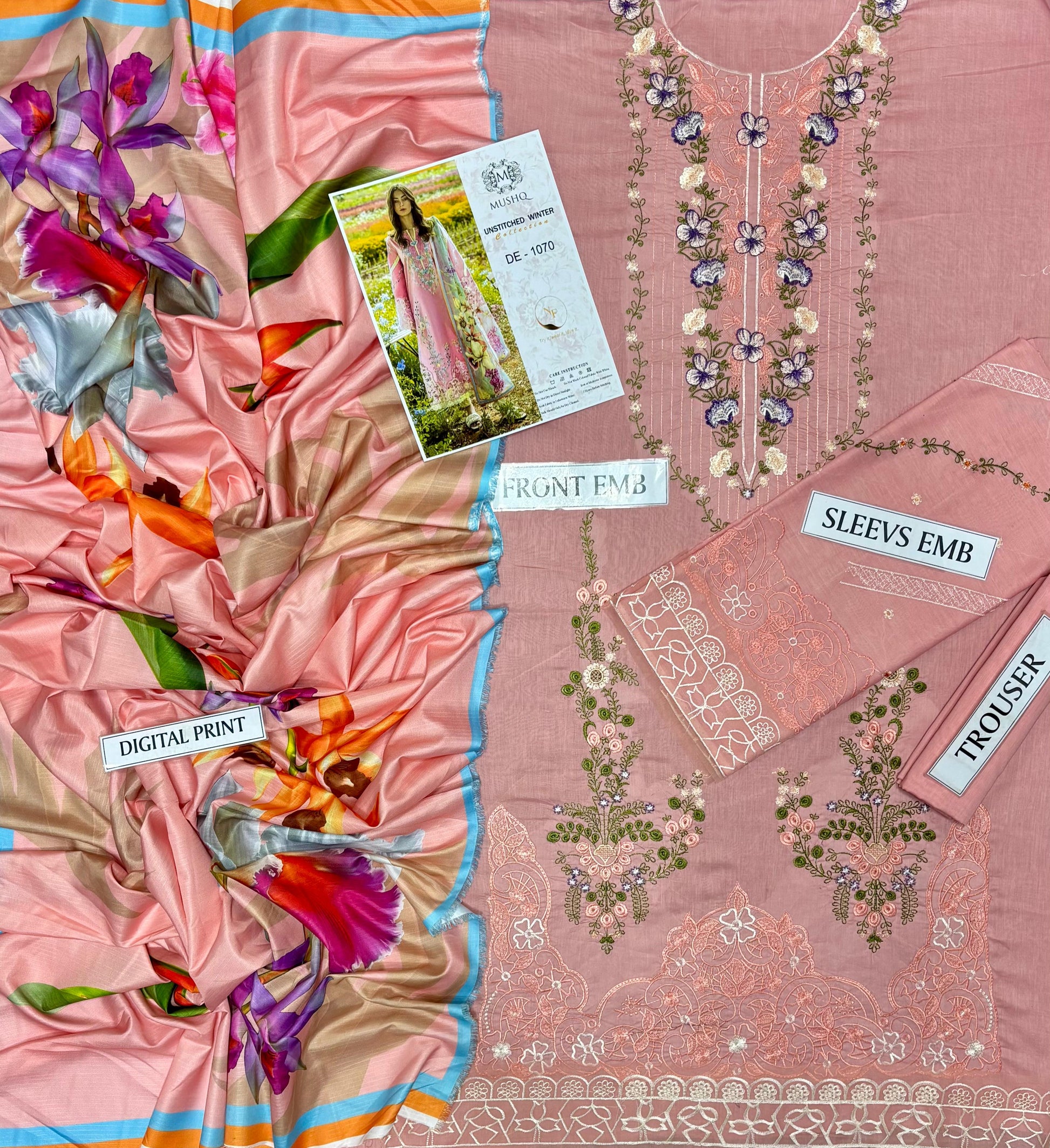 Zavian Collections pesh karta hai Mushq ki naye saal ki pehli Summer Arrival! Ye suit premium Air-jet Lawn par tayyar kiya gaya hai jis par heavy embroidery aur nafees neck design hai Is ke sath diya gaya Bana Dora Swiss Lawm print dupatta isay aik mukammal aur shandar look deta hai jo garmiyon ki dawatun ke liye behtreen hai
